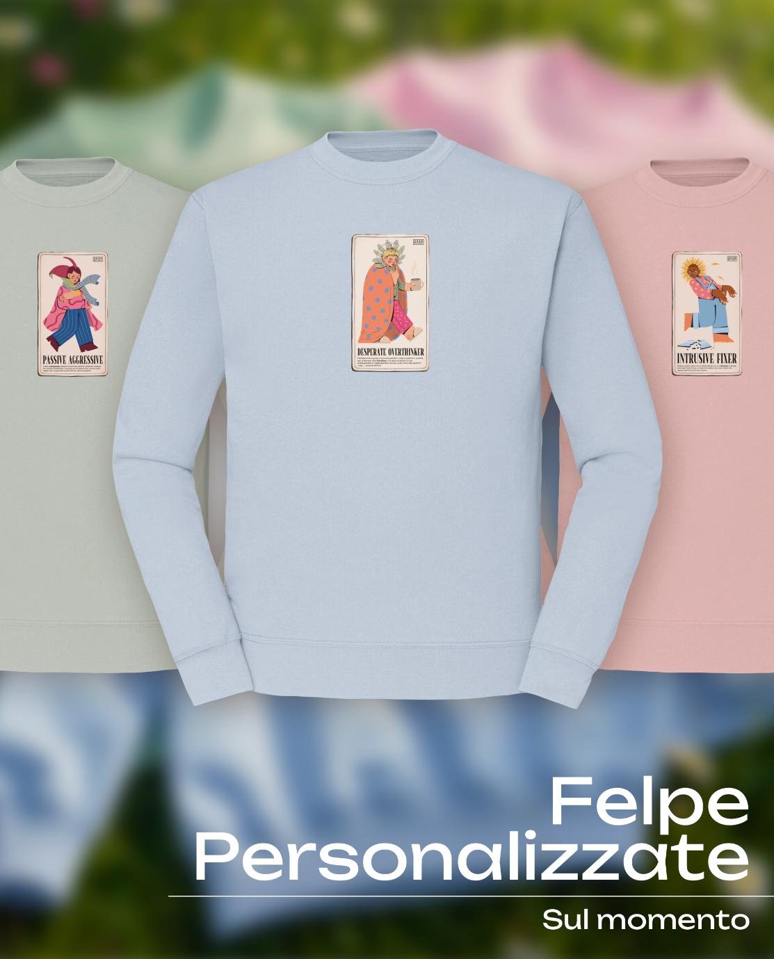 Durante il mercatino il cliente può personalizzare la felpa sul momento, scegliendo il colore del capo e la card da abbinare: la grafica viene poi pressata a caldo direttamente davanti a lui, trasformando la scelta in un’esperienza interattiva.