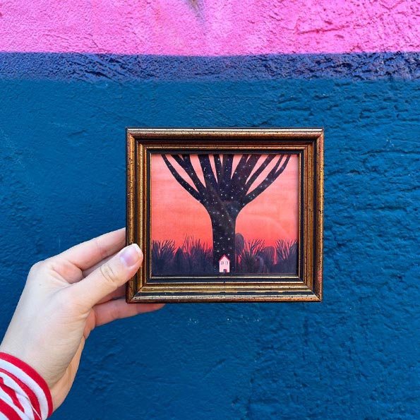 Emanuela Sandu, è un’illustratrice onirica e rilegatrice nata nel 1998 in Romania e cresciuta a Roma, racconta il mondo attraverso immagini sospese tra realtà e immaginazione. La sua ricerca unisce le tecniche tradizionali a linguaggi contemporanei, dando vita a illustrazioni che parlano di natura, città e storie intime.