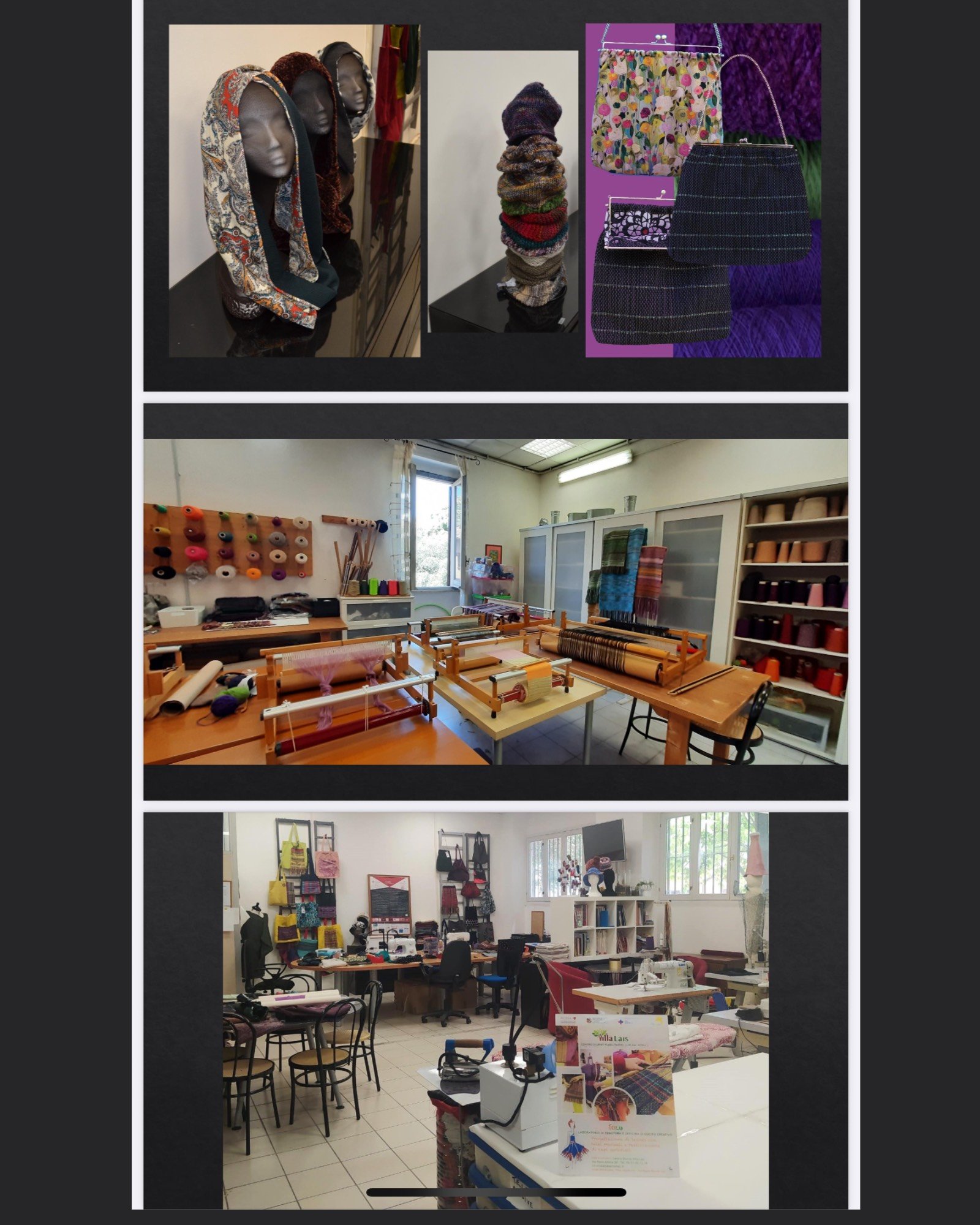 TEXLAB, progetto del Centro Diurno Villa Lais – ASL Roma 2 sostenuto da Roma Capitale: una collezione di pezzi unici fatti a mano, realizzati al telaio e in sartoria dalle utenti del Centro. Un laboratorio che usa la creatività per promuovere inclusione e rinascita attraverso il lavoro artigianale.